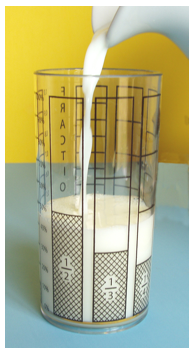 The tenths bar on this glass is labeled with fractions, decimal, and